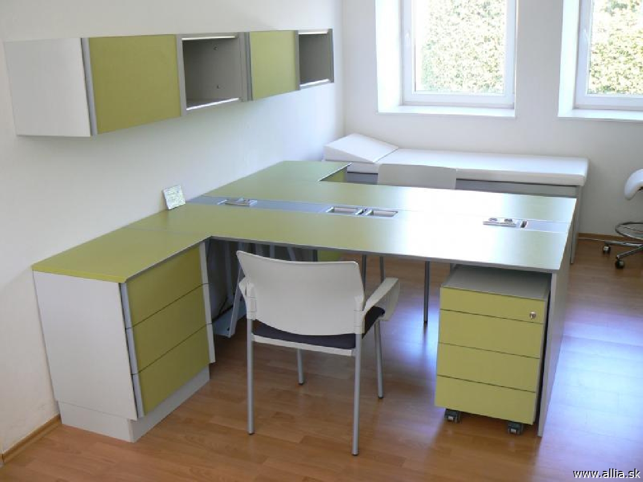 Zostava stolov s vrchnými skrinkami a kontajnermi